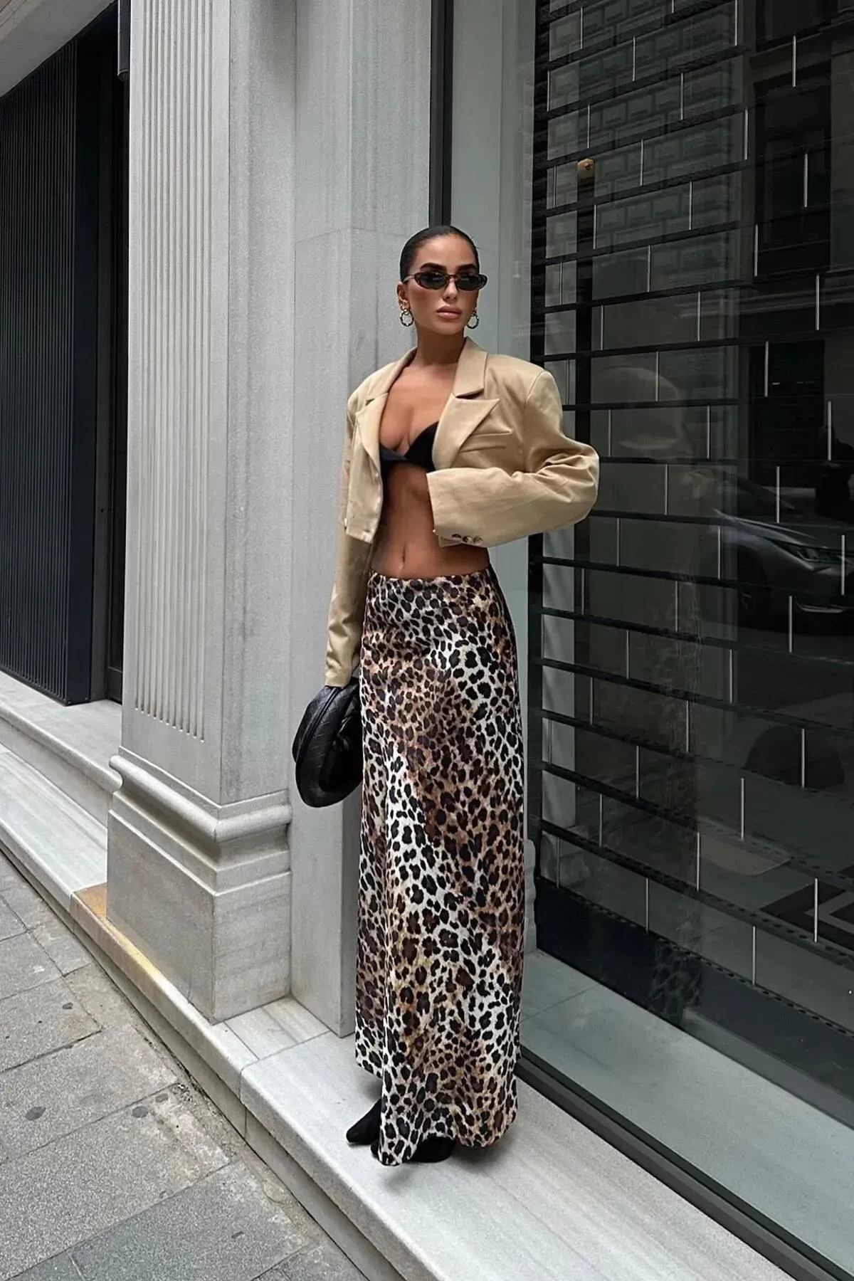 Leopar Desen Saten Etek
